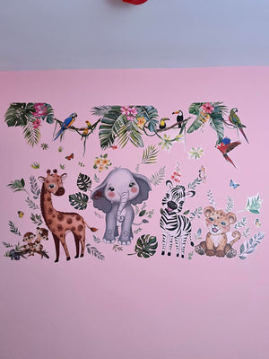 Met deze jungle dieren muurstickers verander je de kinderkamer in een kleurrijke safari-wereld. Ze zijn eenvoudig aan te brengen en te verwijderen, waardoor je de kamer snel en zonder gedoe kunt opfrissen.