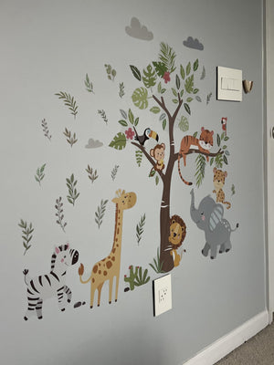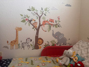 Met onze jungle dieren muursticker set verander je elke saaie muur in een kleurrijk avontuur. Perfect voor nieuwsgierige kinderen die van dieren houden, en je hoeft geen kunstenaar te zijn om het toe te passen!