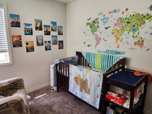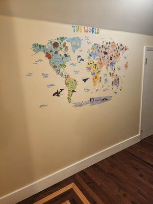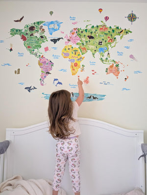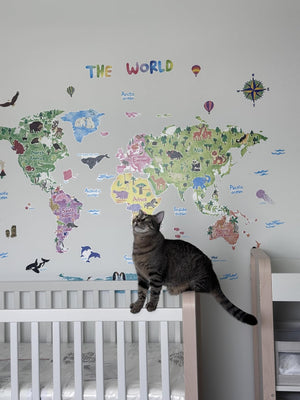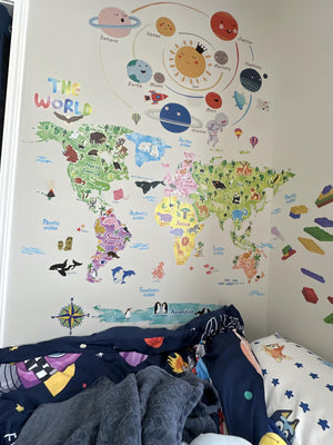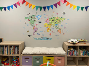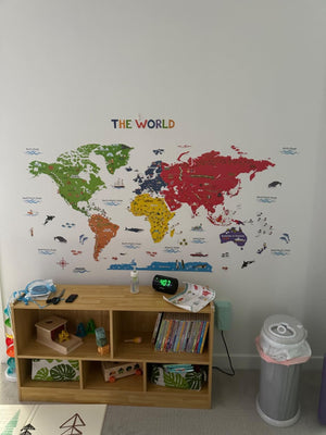 Probeer deze wereldkaart sticker zonder risico! Met onze 14-dagen geld-terug garantie kunt u ze zorgeloos uitproberen en zien hoe ze de kinderkamer transformeren in een kleurrijke speelplek. Uw tevredenheid is gegarandeerd.