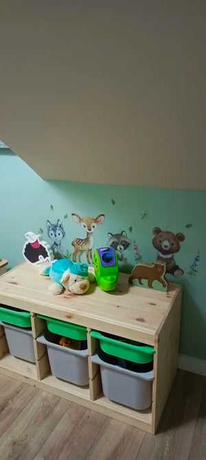 Probeer de vrolijke dieren muurstickers volledig risicoloos. Als u niet tevreden bent, krijgt u binnen 14 dagen uw geld terug. Deze stickers transformeren elke kamer in een magische speelruimte en maken leren leuk. Perfect voor nieuwsgierige en creatieve kinderen.